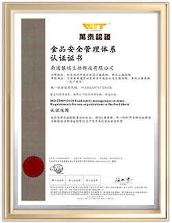 公司通過了 ISO9001質(zhì)量管理體系認證 ISO22000食品安全管理體系。并獲得KOSHER、HALAL認證等專業(yè)資質(zhì)認證。是西南大學科研教學實習基地,也是華中農(nóng)業(yè)大學教學生產(chǎn)實習基地。